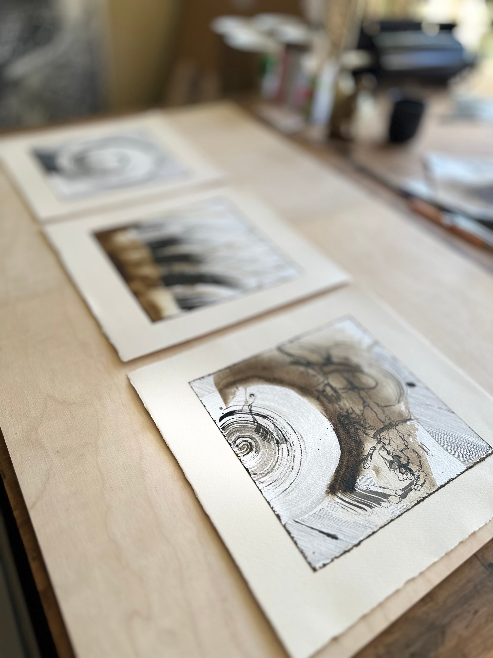 Surfaces: Khadi cotton rag (artwork) mounted to Somerset paper (backing)